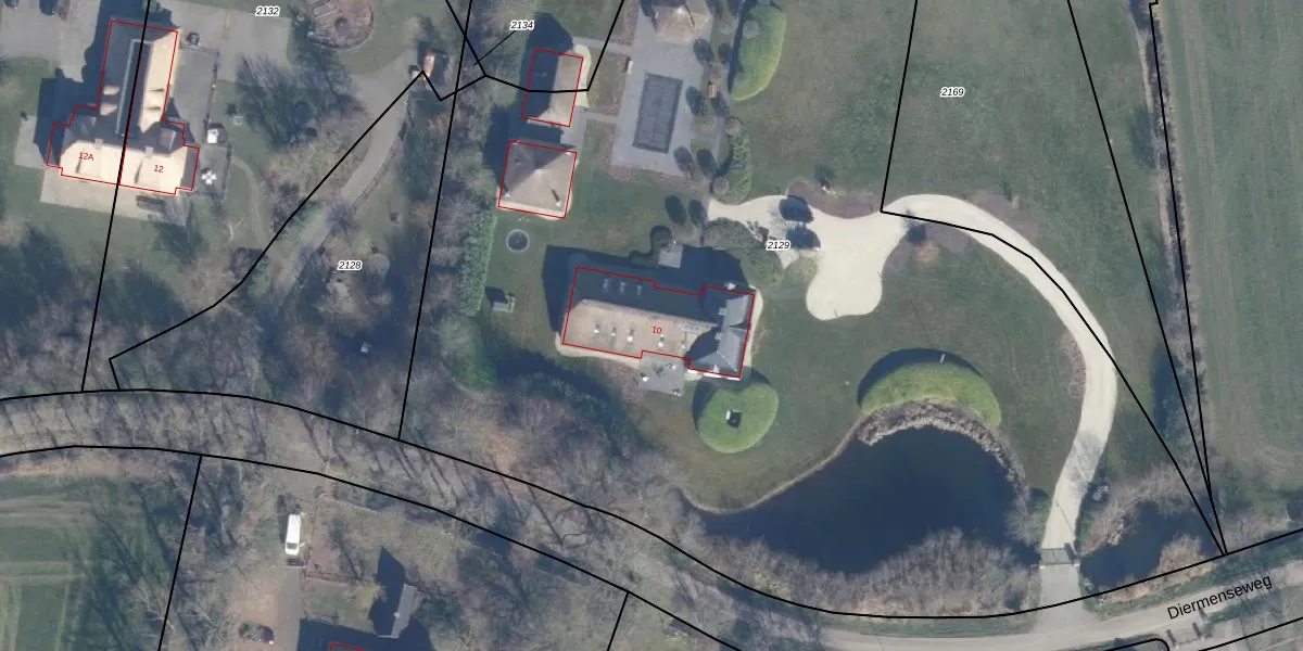 Diermenseweg 10 is gelegen op kadastraal perceel PTN01I2129. Deze kadastrale aanduiding is uniek en wordt gebruikt door het Kadaster om eigendomsrechten en andere zakelijke rechten vast te leggen. Het perceel maakt onderdeel uit van de kadastrale gemeente Putten.