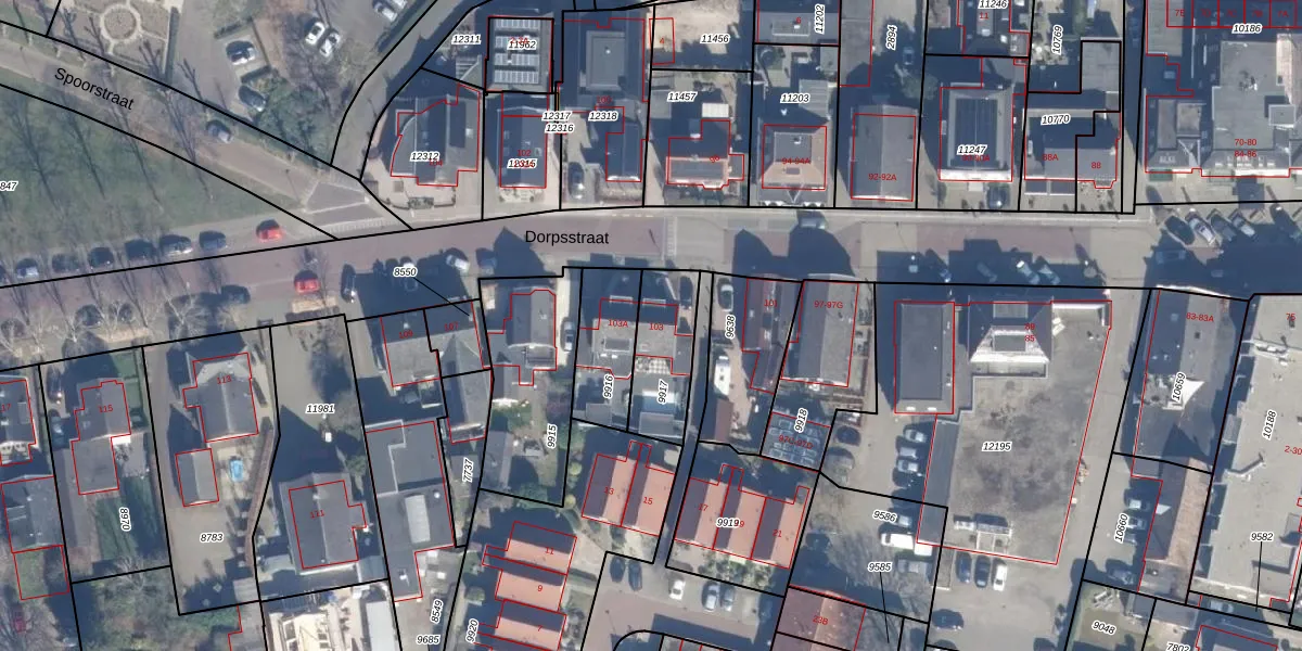 Het perceel waarop Dorpsstraat 103 staat heeft een oppervlakte van 250 m². Dit is een middelgroot perceel. De perceeloppervlakte wordt geregistreerd door het Kadaster. Gedetailleerde informatie over de maten van dit perceel kunt u vinden in het rapport Kadastrale kaart met maatvoering van Dorpsstraat 103.