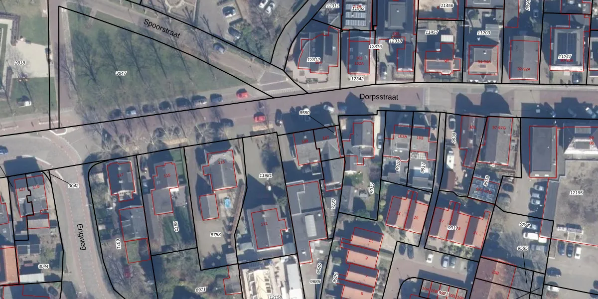 Het perceel waarop Dorpsstraat 109 staat heeft een oppervlakte van 660 m². Dit is een groot perceel. De perceeloppervlakte wordt geregistreerd door het Kadaster. Gedetailleerde informatie over de maten van dit perceel kunt u vinden in het rapport Kadastrale kaart met maatvoering van Dorpsstraat 109.
