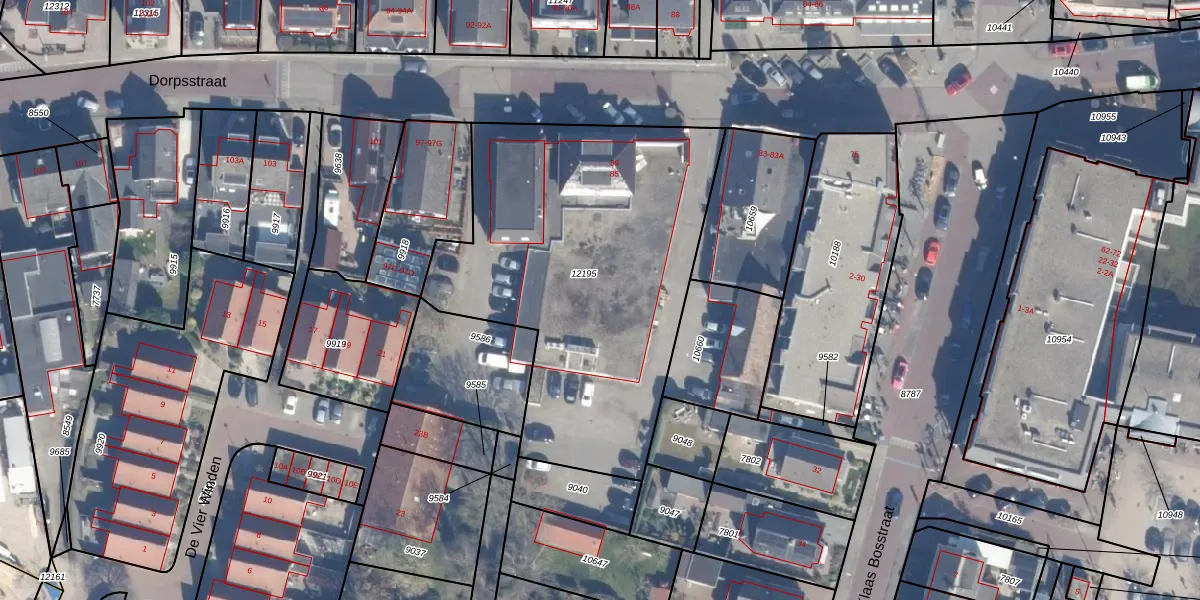 Het perceel waarop Dorpsstraat 85 staat heeft een oppervlakte van 1985 m². Dit is een zeer groot perceel. De perceeloppervlakte wordt geregistreerd door het Kadaster. Gedetailleerde informatie over de maten van dit perceel kunt u vinden in het rapport Kadastrale kaart met maatvoering van Dorpsstraat 85.