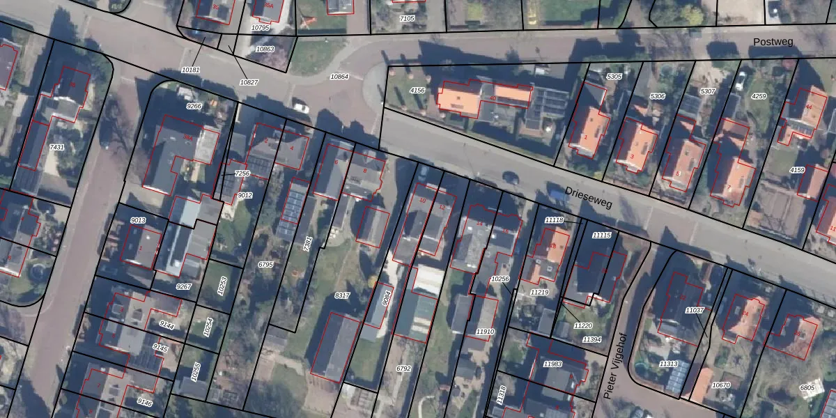 Gebruik de zoekbalk of klik op een perceel voor informatie over de adressen binnen dit perceel.