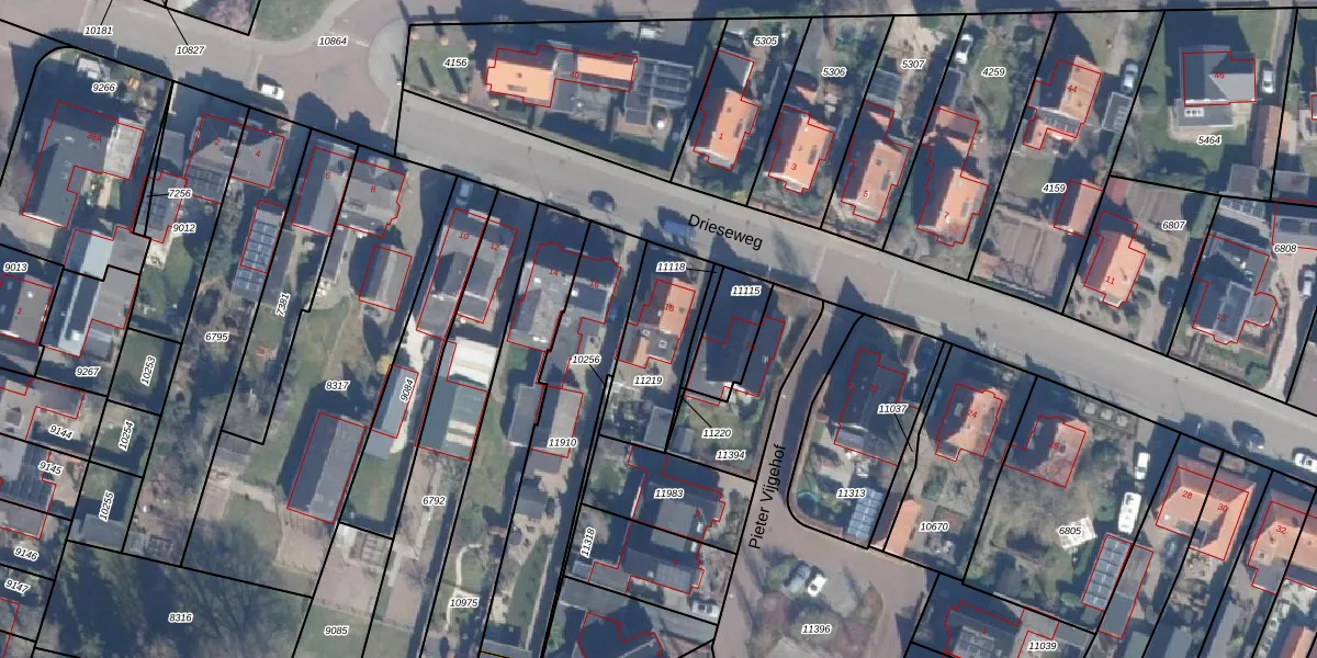 Het perceel waarop Drieseweg 18 staat heeft een oppervlakte van 313 m². Dit is een groot perceel. De perceeloppervlakte wordt geregistreerd door het Kadaster. Gedetailleerde informatie over de maten van dit perceel kunt u vinden in het rapport Kadastrale kaart met maatvoering van Drieseweg 18.