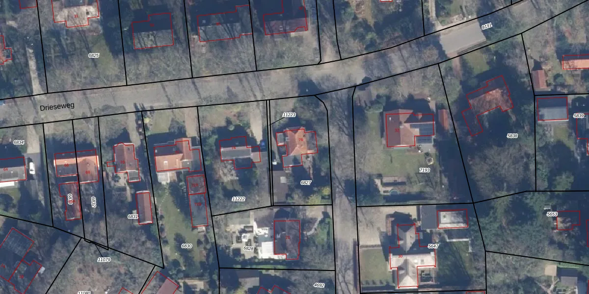 Het perceel waarop Drieseweg 76 staat heeft een oppervlakte van 715 m². Dit is een groot perceel. De perceeloppervlakte wordt geregistreerd door het Kadaster. Gedetailleerde informatie over de maten van dit perceel kunt u vinden in het rapport Kadastrale kaart met maatvoering van Drieseweg 76.