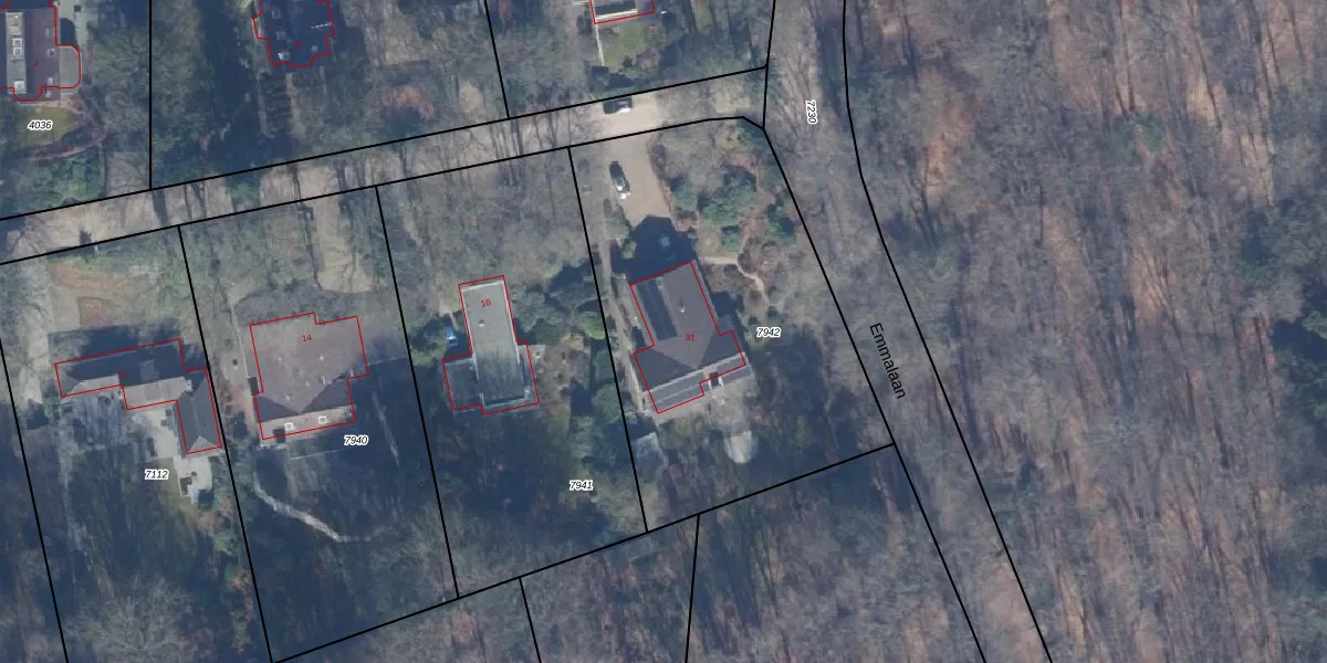 Het perceel waarop Emmalaan 31 staat heeft een oppervlakte van 1873 m². Dit is een zeer groot perceel. De perceeloppervlakte wordt geregistreerd door het Kadaster. Gedetailleerde informatie over de maten van dit perceel kunt u vinden in het rapport Kadastrale kaart met maatvoering van Emmalaan 31.