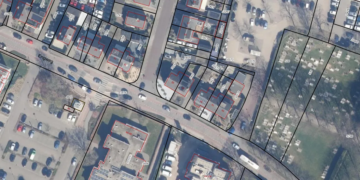 Het perceel waarop Engweg 37 staat heeft een oppervlakte van 237 m². Dit is een middelgroot perceel. De perceeloppervlakte wordt geregistreerd door het Kadaster. Gedetailleerde informatie over de maten van dit perceel kunt u vinden in het rapport Kadastrale kaart met maatvoering van Engweg 37.