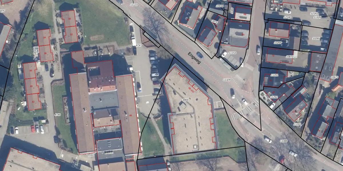 Het perceel waarop Engweg 48 staat heeft een oppervlakte van 2090 m². Dit is een zeer groot perceel. De perceeloppervlakte wordt geregistreerd door het Kadaster. Gedetailleerde informatie over de maten van dit perceel kunt u vinden in het rapport Kadastrale kaart met maatvoering van Engweg 48.