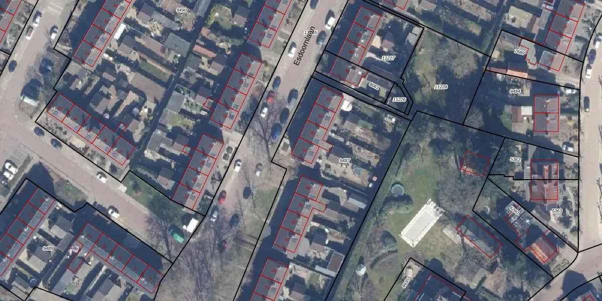 Het perceel waarop Esdoornlaan 38 staat heeft een oppervlakte van 4165 m². Dit is een zeer groot perceel. De perceeloppervlakte wordt geregistreerd door het Kadaster. Gedetailleerde informatie over de maten van dit perceel kunt u vinden in het rapport Kadastrale kaart met maatvoering van Esdoornlaan 38.