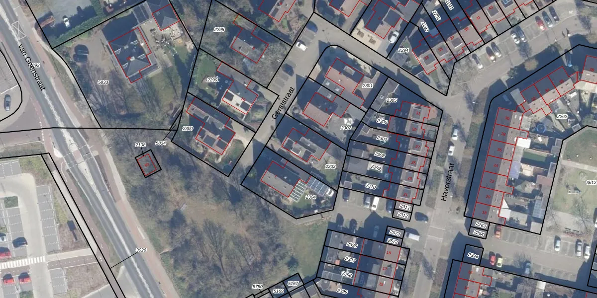 Het perceel waarop Gerststraat 5 staat heeft een oppervlakte van 345 m². Dit is een groot perceel. De perceeloppervlakte wordt geregistreerd door het Kadaster. Gedetailleerde informatie over de maten van dit perceel kunt u vinden in het rapport Kadastrale kaart met maatvoering van Gerststraat 5.