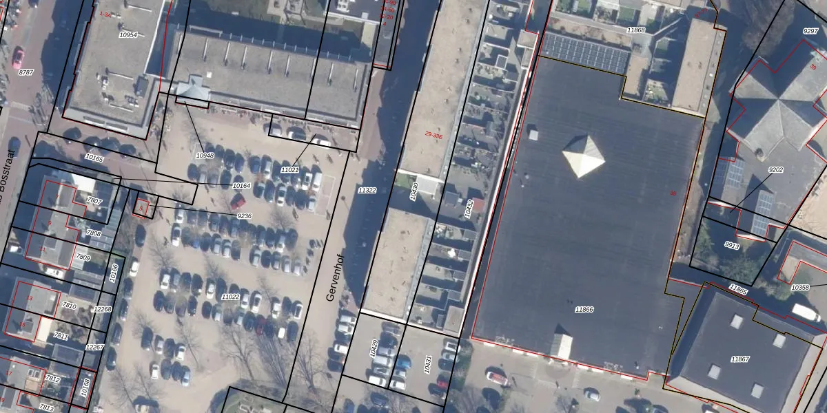 Het perceel waarop Gervenhof 31 staat heeft een oppervlakte van 1200 m². Dit is een zeer groot perceel. De perceeloppervlakte wordt geregistreerd door het Kadaster. Gedetailleerde informatie over de maten van dit perceel kunt u vinden in het rapport Kadastrale kaart met maatvoering van Gervenhof 31.