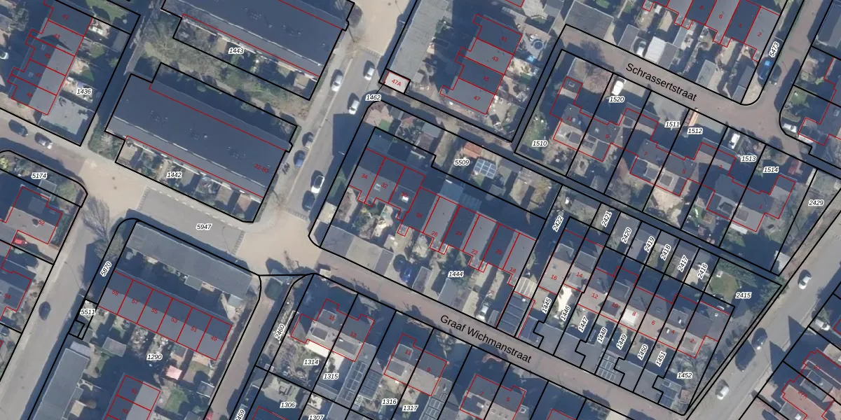 Het perceel waarop Graaf Wichmanstraat 28 staat heeft een oppervlakte van 1363 m². Dit is een zeer groot perceel. De perceeloppervlakte wordt geregistreerd door het Kadaster. Gedetailleerde informatie over de maten van dit perceel kunt u vinden in het rapport Kadastrale kaart met maatvoering van Graaf Wichmanstraat 28.