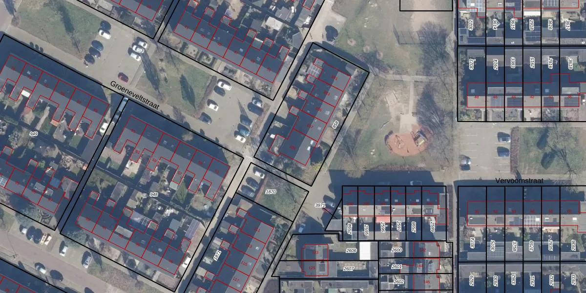 Het perceel waarop Groeneveltstraat 109 staat heeft een oppervlakte van 965 m². Dit is een groot perceel. De perceeloppervlakte wordt geregistreerd door het Kadaster. Gedetailleerde informatie over de maten van dit perceel kunt u vinden in het rapport Kadastrale kaart met maatvoering van Groeneveltstraat 109.
