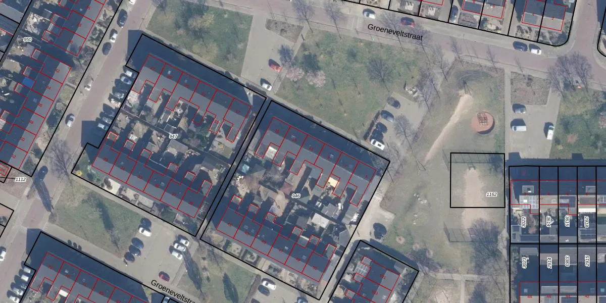 Het perceel waarop Groeneveltstraat 11 staat heeft een oppervlakte van 2263 m². Dit is een zeer groot perceel. De perceeloppervlakte wordt geregistreerd door het Kadaster. Gedetailleerde informatie over de maten van dit perceel kunt u vinden in het rapport Kadastrale kaart met maatvoering van Groeneveltstraat 11.
