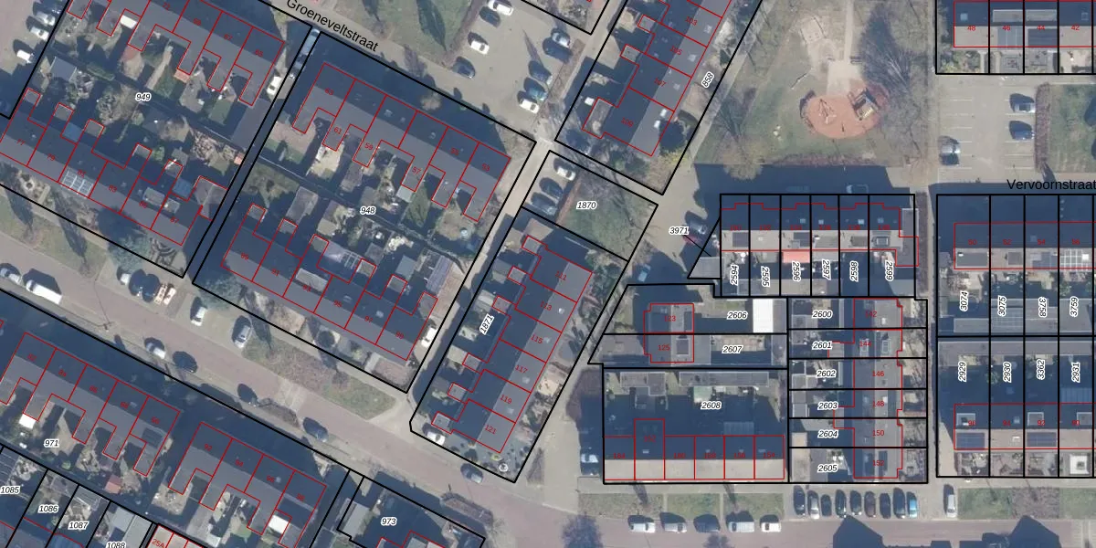 Het perceel waarop Groeneveltstraat 111 staat heeft een oppervlakte van 1000 m². Dit is een zeer groot perceel. De perceeloppervlakte wordt geregistreerd door het Kadaster. Gedetailleerde informatie over de maten van dit perceel kunt u vinden in het rapport Kadastrale kaart met maatvoering van Groeneveltstraat 111.
