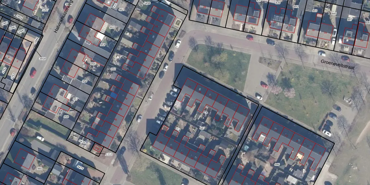Het perceel waarop Groeneveltstraat 27 staat heeft een oppervlakte van 2223 m². Dit is een zeer groot perceel. De perceeloppervlakte wordt geregistreerd door het Kadaster. Gedetailleerde informatie over de maten van dit perceel kunt u vinden in het rapport Kadastrale kaart met maatvoering van Groeneveltstraat 27.