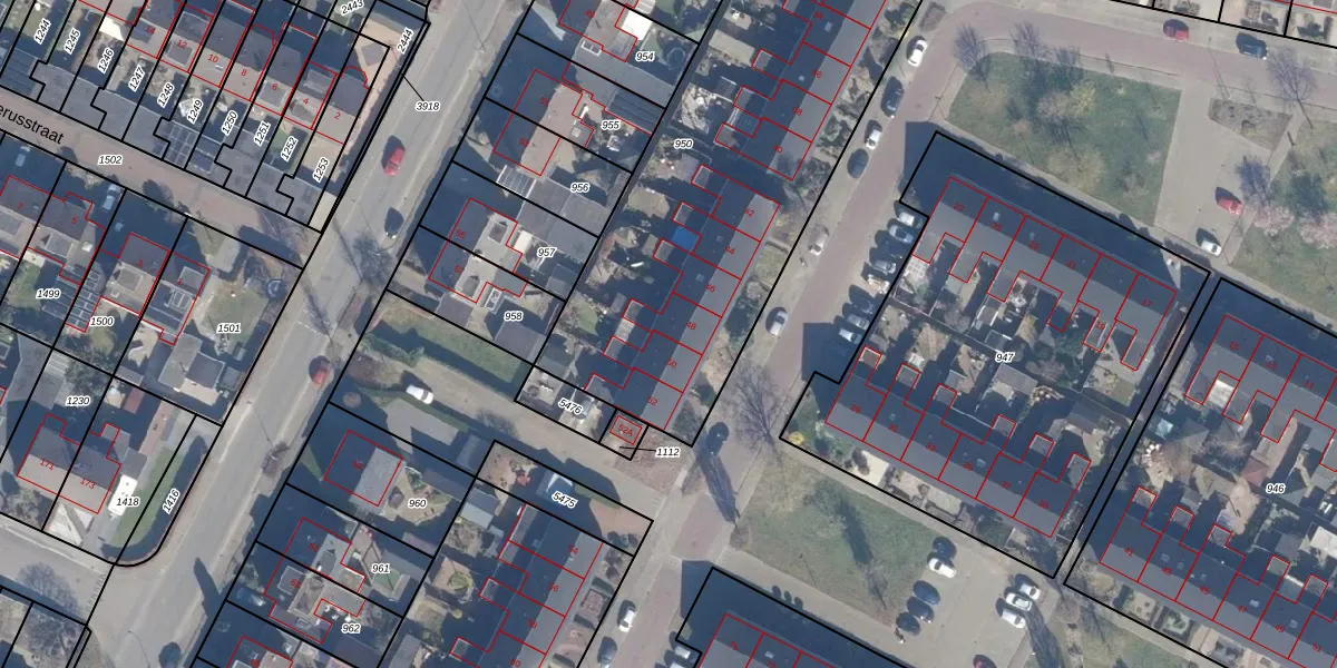 Het perceel waarop Groeneveltstraat 48 staat heeft een oppervlakte van 2218 m². Dit is een zeer groot perceel. De perceeloppervlakte wordt geregistreerd door het Kadaster. Gedetailleerde informatie over de maten van dit perceel kunt u vinden in het rapport Kadastrale kaart met maatvoering van Groeneveltstraat 48.