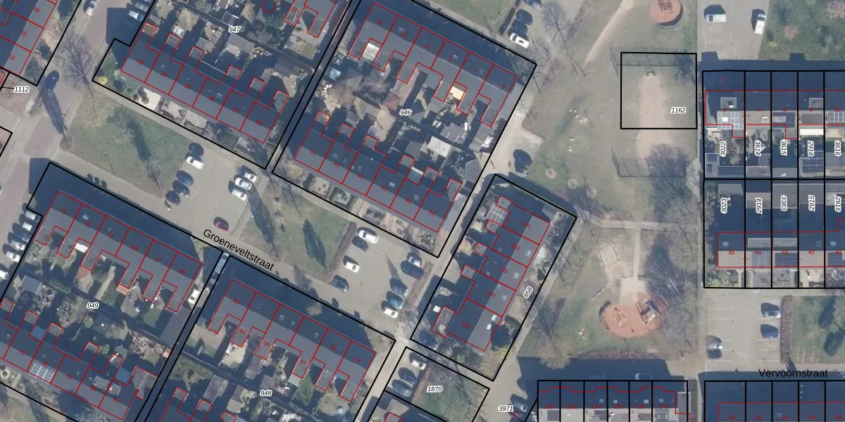 Het perceel waarop Groeneveltstraat 51 staat heeft een oppervlakte van 2263 m². Dit is een zeer groot perceel. De perceeloppervlakte wordt geregistreerd door het Kadaster. Gedetailleerde informatie over de maten van dit perceel kunt u vinden in het rapport Kadastrale kaart met maatvoering van Groeneveltstraat 51.