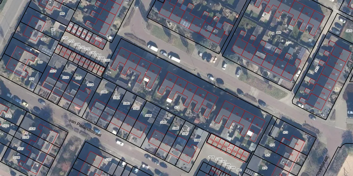 Het perceel waarop Groeneveltstraat 84 staat heeft een oppervlakte van 2413 m². Dit is een zeer groot perceel. De perceeloppervlakte wordt geregistreerd door het Kadaster. Gedetailleerde informatie over de maten van dit perceel kunt u vinden in het rapport Kadastrale kaart met maatvoering van Groeneveltstraat 84.