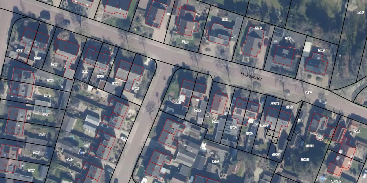 Het perceel waarop Hakschaer 25 staat heeft een oppervlakte van 349 m². Dit is een groot perceel. De perceeloppervlakte wordt geregistreerd door het Kadaster. Gedetailleerde informatie over de maten van dit perceel kunt u vinden in het rapport Kadastrale kaart met maatvoering van Hakschaer 25.