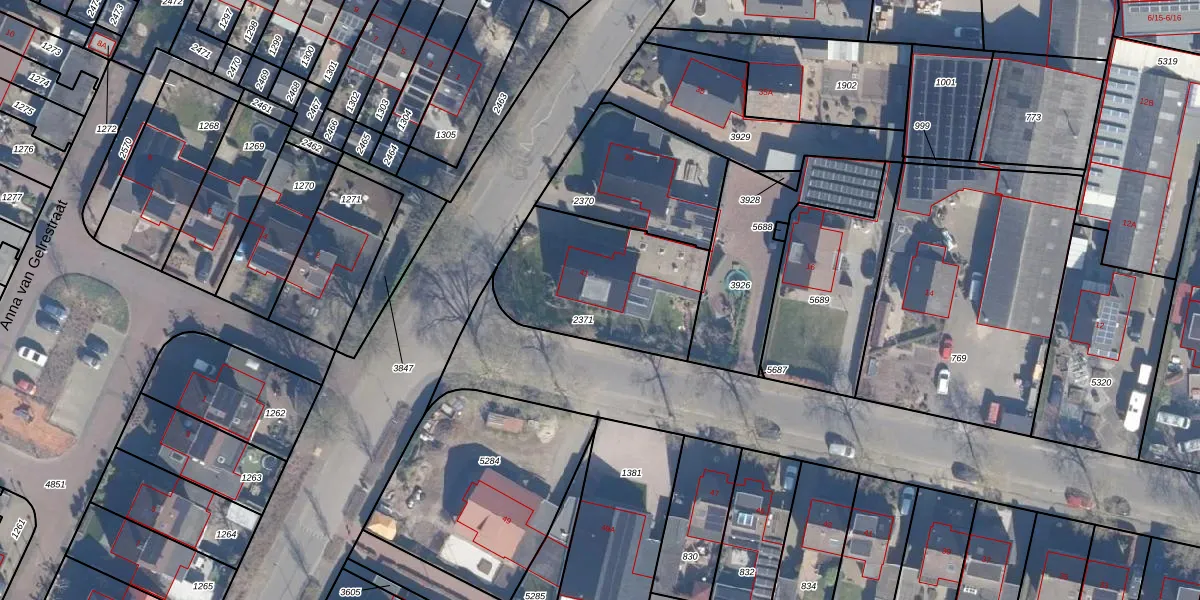 Gebruik de zoekbalk of klik op een perceel voor informatie over de adressen binnen dit perceel.