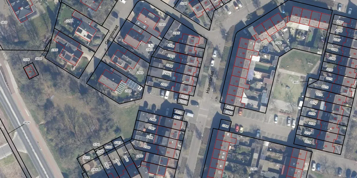 Gebruik de zoekbalk of klik op een perceel voor informatie over de adressen binnen dit perceel.
