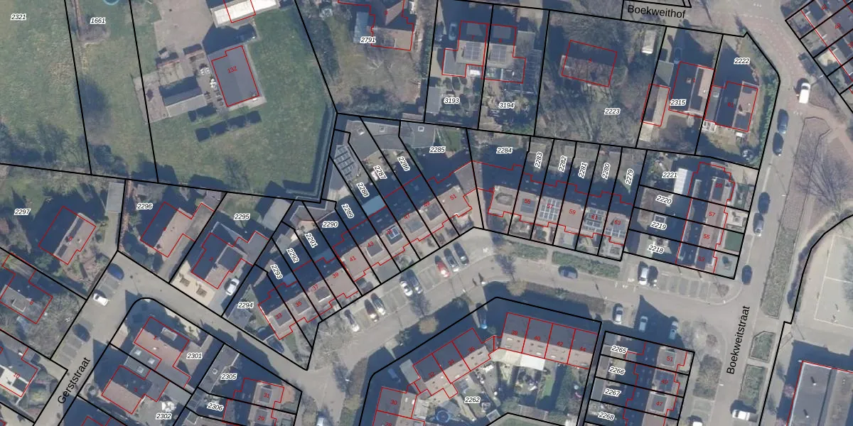 Gebruik de zoekbalk of klik op een perceel voor informatie over de adressen binnen dit perceel.
