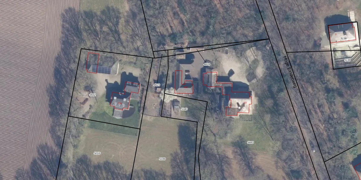 Het perceel waarop Hoge Einderweg 10-Z staat heeft een oppervlakte van 6301 m². Dit is een zeer groot perceel. De perceeloppervlakte wordt geregistreerd door het Kadaster. Gedetailleerde informatie over de maten van dit perceel kunt u vinden in het rapport Kadastrale kaart met maatvoering van Hoge Einderweg 10-Z.