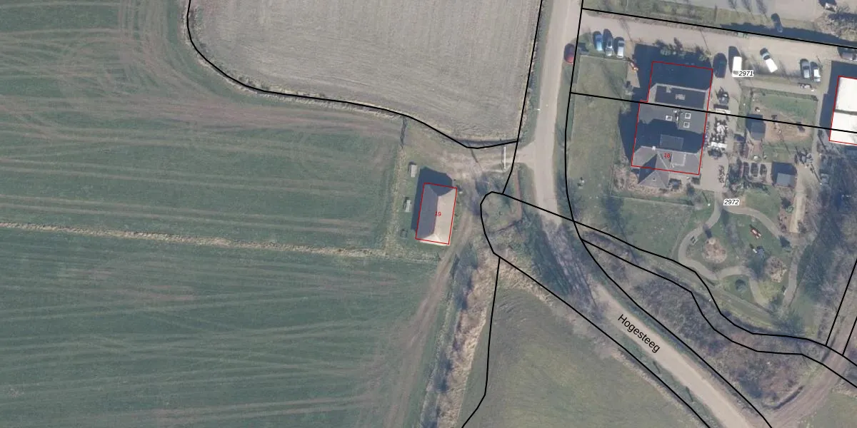 Het perceel waarop Hogesteeg 19 staat heeft een oppervlakte van 5,1 ha. Dit is een zeer groot perceel. De perceeloppervlakte wordt geregistreerd door het Kadaster. Gedetailleerde informatie over de maten van dit perceel kunt u vinden in het rapport Kadastrale kaart met maatvoering van Hogesteeg 19.