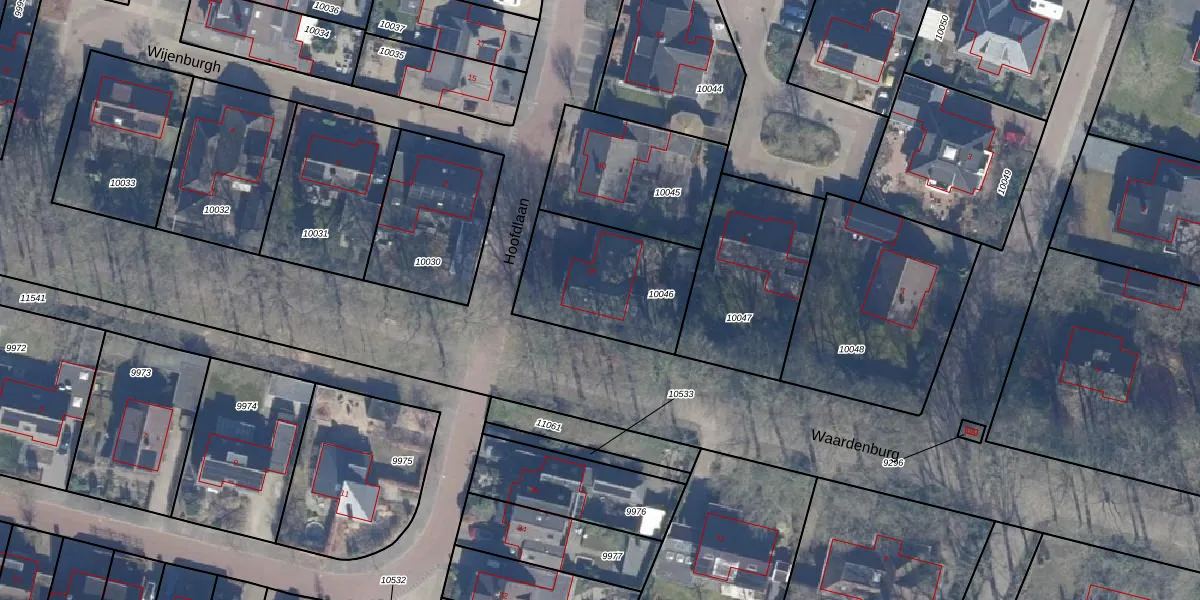 Gebruik de zoekbalk of klik op een perceel voor informatie over de adressen binnen dit perceel.