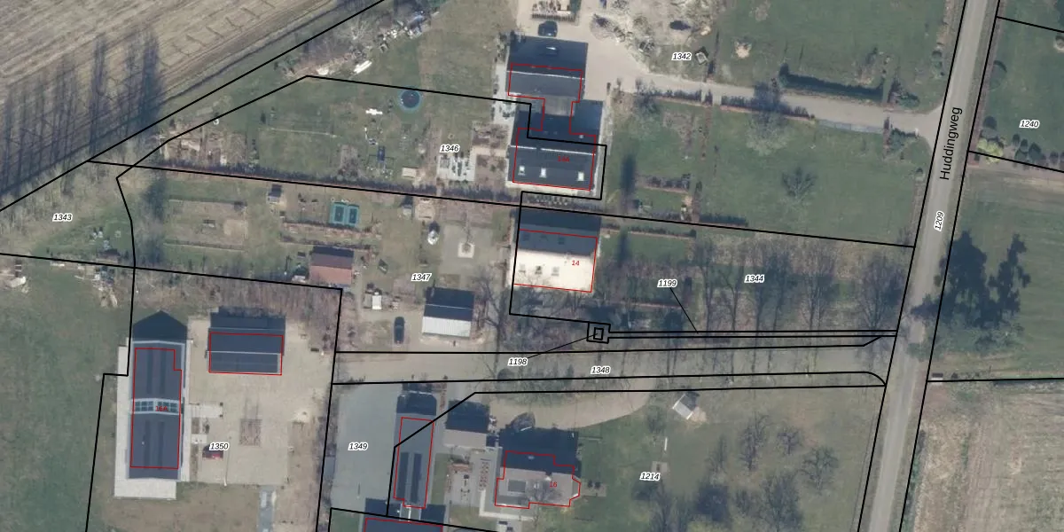 Huddingweg 14 is gelegen op kadastraal perceel PTN01G1344. Deze kadastrale aanduiding is uniek en wordt gebruikt door het Kadaster om eigendomsrechten en andere zakelijke rechten vast te leggen. Het perceel maakt onderdeel uit van de kadastrale gemeente Putten.