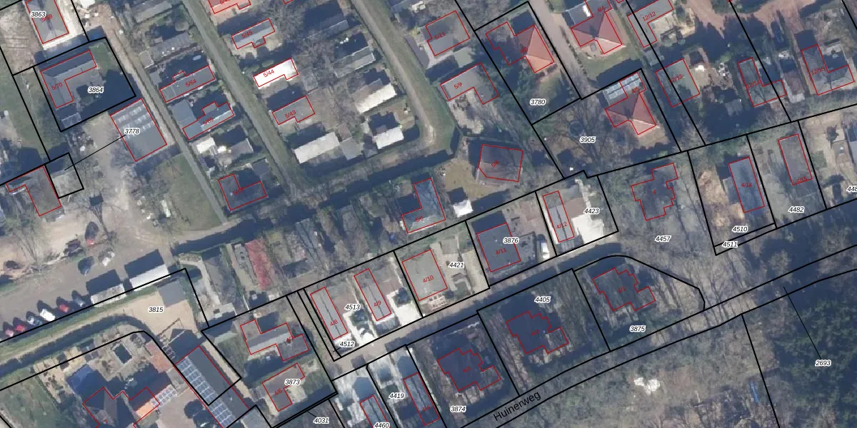 Het perceel waarop Huinerenkweg 5-6 staat heeft een oppervlakte van 1,7 ha. Dit is een zeer groot perceel. De perceeloppervlakte wordt geregistreerd door het Kadaster. Gedetailleerde informatie over de maten van dit perceel kunt u vinden in het rapport Kadastrale kaart met maatvoering van Huinerenkweg 5-6.