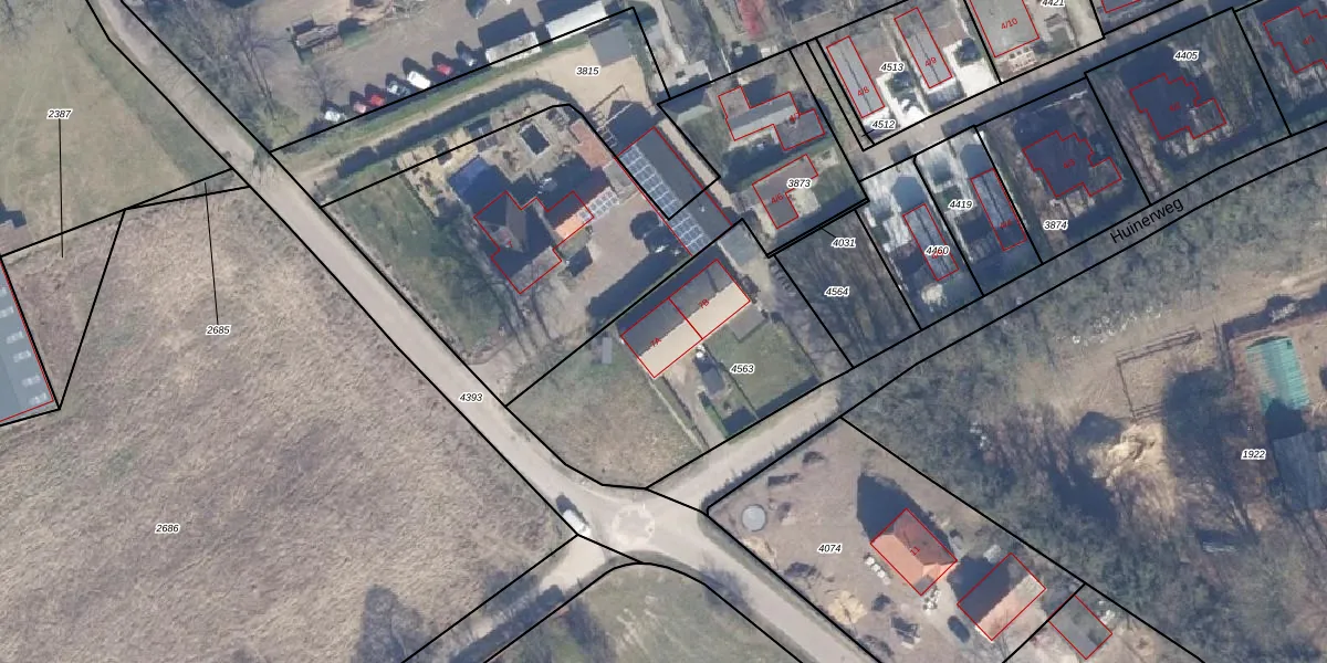 Het perceel waarop Huinerenkweg 7-A staat heeft een oppervlakte van 1061 m². Dit is een zeer groot perceel. De perceeloppervlakte wordt geregistreerd door het Kadaster. Gedetailleerde informatie over de maten van dit perceel kunt u vinden in het rapport Kadastrale kaart met maatvoering van Huinerenkweg 7-A.