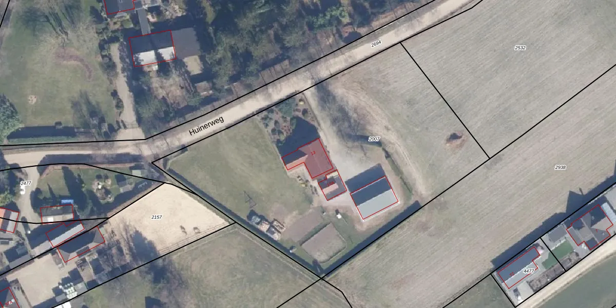Huinerweg 13 is gelegen op kadastraal perceel PTN01D2007. Deze kadastrale aanduiding is uniek en wordt gebruikt door het Kadaster om eigendomsrechten en andere zakelijke rechten vast te leggen. Het perceel maakt onderdeel uit van de kadastrale gemeente Putten.