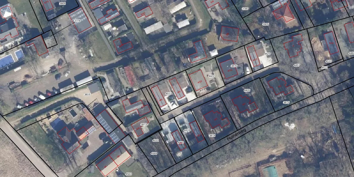 Huinerweg 4-9 is gelegen op kadastraal perceel PTN01D4513. Deze kadastrale aanduiding is uniek en wordt gebruikt door het Kadaster om eigendomsrechten en andere zakelijke rechten vast te leggen. Het perceel maakt onderdeel uit van de kadastrale gemeente Putten.