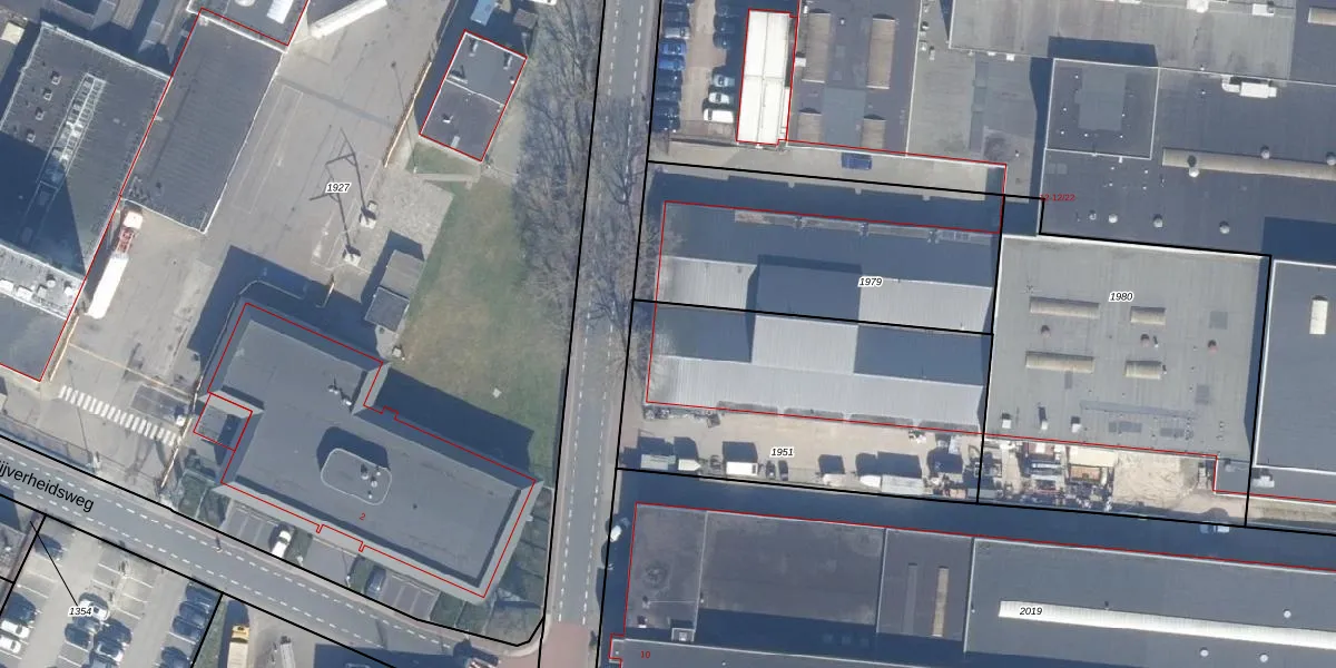 Het perceel waarop Industrieweg 12-13 staat heeft een oppervlakte van 1390 m². Dit is een zeer groot perceel. De perceeloppervlakte wordt geregistreerd door het Kadaster. Gedetailleerde informatie over de maten van dit perceel kunt u vinden in het rapport Kadastrale kaart met maatvoering van Industrieweg 12-13.