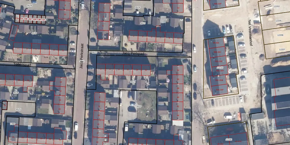 Jacq Perkpad 12 is gelegen op kadastraal perceel PTN01C9521. Deze kadastrale aanduiding is uniek en wordt gebruikt door het Kadaster om eigendomsrechten en andere zakelijke rechten vast te leggen. Het perceel maakt onderdeel uit van de kadastrale gemeente Putten.
