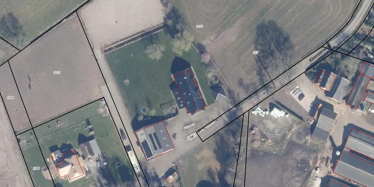 Het perceel waarop Kloosterweg 13 staat heeft een oppervlakte van 1,3 ha. Dit is een zeer groot perceel. De perceeloppervlakte wordt geregistreerd door het Kadaster. Gedetailleerde informatie over de maten van dit perceel kunt u vinden in het rapport Kadastrale kaart met maatvoering van Kloosterweg 13.