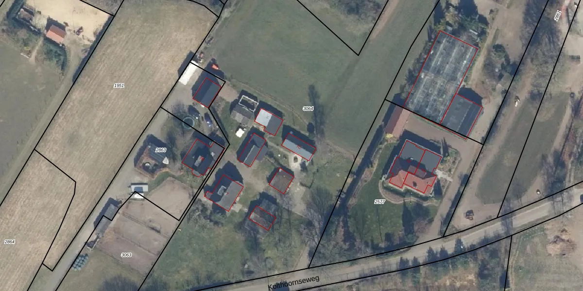 Het perceel waarop Kolthoornseweg 7-C staat heeft een oppervlakte van 6080 m². Dit is een zeer groot perceel. De perceeloppervlakte wordt geregistreerd door het Kadaster. Gedetailleerde informatie over de maten van dit perceel kunt u vinden in het rapport Kadastrale kaart met maatvoering van Kolthoornseweg 7-C.