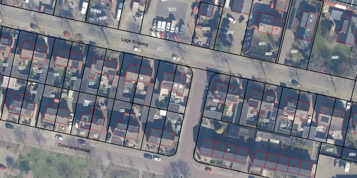 Gebruik de zoekbalk of klik op een perceel voor informatie over de adressen binnen dit perceel.