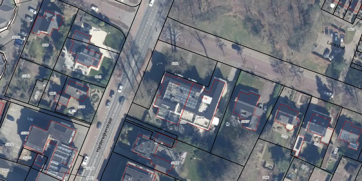 Lariksstraat 2 is gelegen op kadastraal perceel PTN01C10978. Deze kadastrale aanduiding is uniek en wordt gebruikt door het Kadaster om eigendomsrechten en andere zakelijke rechten vast te leggen. Het perceel maakt onderdeel uit van de kadastrale gemeente Putten.