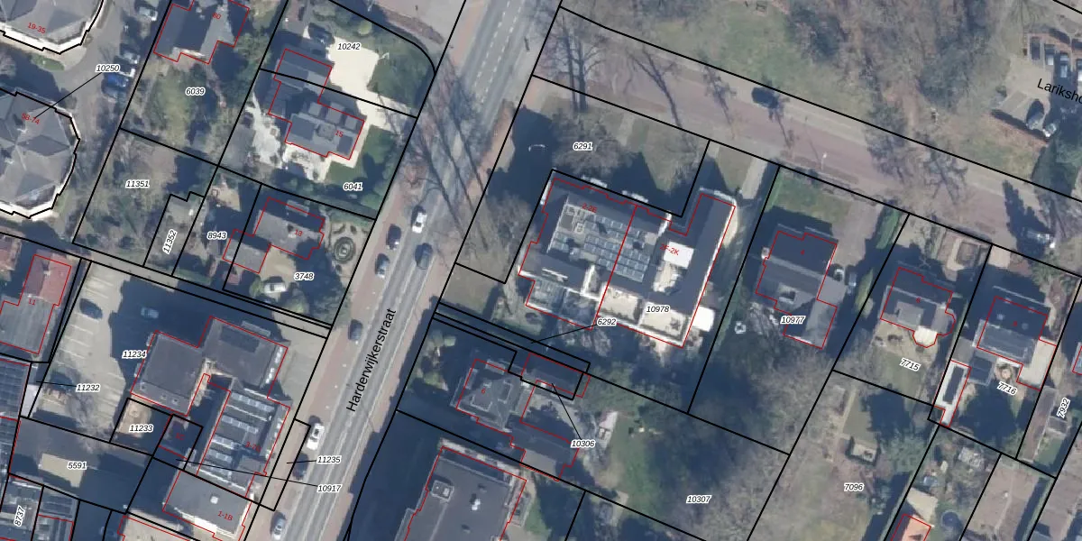 Lariksstraat 2-E is gelegen op kadastraal perceel PTN01C10978. Deze kadastrale aanduiding is uniek en wordt gebruikt door het Kadaster om eigendomsrechten en andere zakelijke rechten vast te leggen. Het perceel maakt onderdeel uit van de kadastrale gemeente Putten.