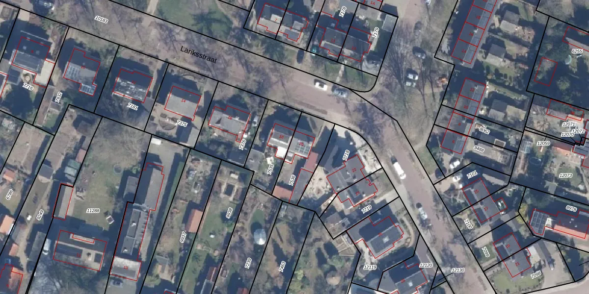 Lariksstraat 20 is gelegen op kadastraal perceel PTN01C7536. Deze kadastrale aanduiding is uniek en wordt gebruikt door het Kadaster om eigendomsrechten en andere zakelijke rechten vast te leggen. Het perceel maakt onderdeel uit van de kadastrale gemeente Putten.