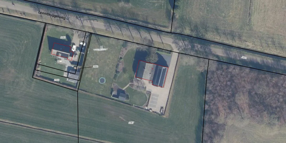 Leembruggerweg 5 is gelegen op kadastraal perceel PTN01K2357. Deze kadastrale aanduiding is uniek en wordt gebruikt door het Kadaster om eigendomsrechten en andere zakelijke rechten vast te leggen. Het perceel maakt onderdeel uit van de kadastrale gemeente Putten.