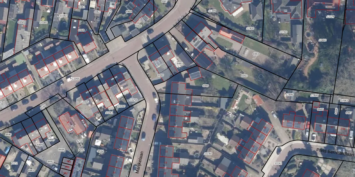 Gebruik de zoekbalk of klik op een perceel voor informatie over de adressen binnen dit perceel.