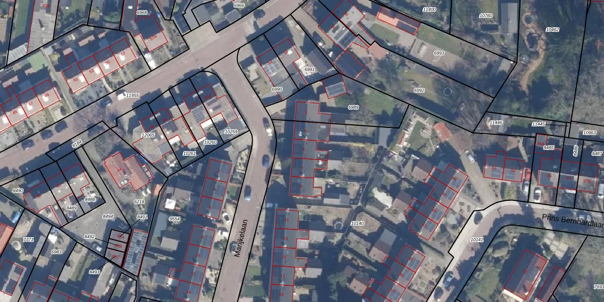 Het perceel waarop Marijkelaan 5 staat heeft een oppervlakte van 5955 m². Dit is een zeer groot perceel. De perceeloppervlakte wordt geregistreerd door het Kadaster. Gedetailleerde informatie over de maten van dit perceel kunt u vinden in het rapport Kadastrale kaart met maatvoering van Marijkelaan 5.