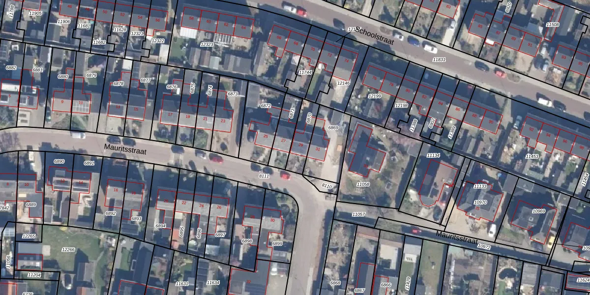 Gebruik de zoekbalk of klik op een perceel voor informatie over de adressen binnen dit perceel.