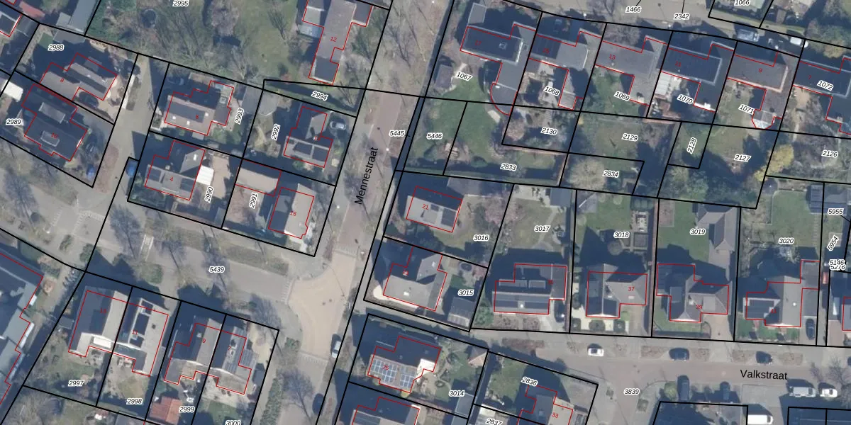 Het perceel waarop Mennestraat 21 staat heeft een oppervlakte van 475 m². Dit is een groot perceel. De perceeloppervlakte wordt geregistreerd door het Kadaster. Gedetailleerde informatie over de maten van dit perceel kunt u vinden in het rapport Kadastrale kaart met maatvoering van Mennestraat 21.