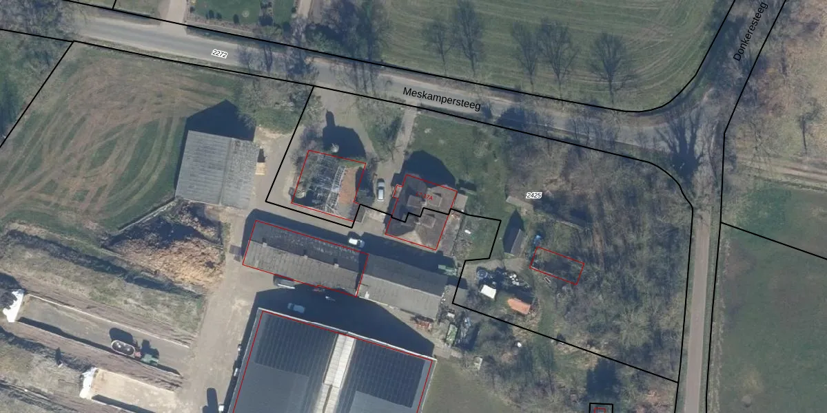 Het perceel waarop Meskampersteeg 17 staat heeft een oppervlakte van 3775 m². Dit is een zeer groot perceel. De perceeloppervlakte wordt geregistreerd door het Kadaster. Gedetailleerde informatie over de maten van dit perceel kunt u vinden in het rapport Kadastrale kaart met maatvoering van Meskampersteeg 17.