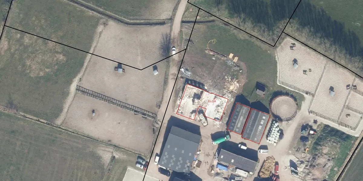 Het perceel waarop Meskampersteeg 21 staat heeft een oppervlakte van 1,6 ha. Dit is een zeer groot perceel. De perceeloppervlakte wordt geregistreerd door het Kadaster. Gedetailleerde informatie over de maten van dit perceel kunt u vinden in het rapport Kadastrale kaart met maatvoering van Meskampersteeg 21.