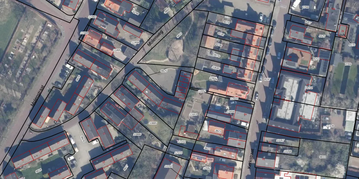 Het perceel waarop Molenweg 1-M staat heeft een oppervlakte van 573 m². Dit is een groot perceel. De perceeloppervlakte wordt geregistreerd door het Kadaster. Gedetailleerde informatie over de maten van dit perceel kunt u vinden in het rapport Kadastrale kaart met maatvoering van Molenweg 1-M.