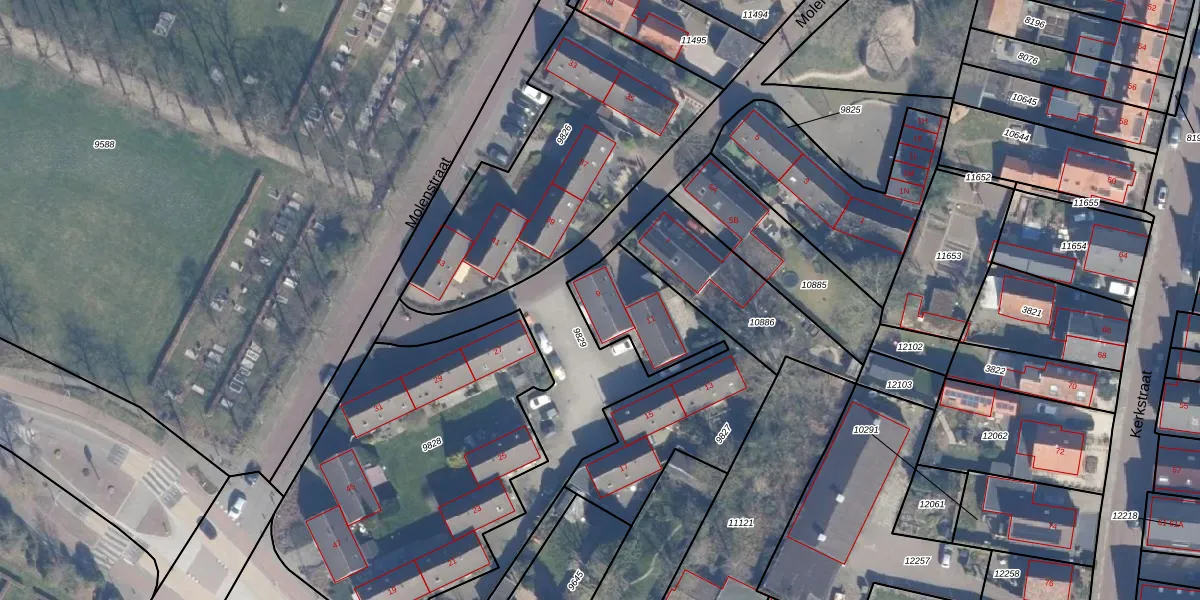 Het perceel waarop Molenweg 9 staat heeft een oppervlakte van 782 m². Dit is een groot perceel. De perceeloppervlakte wordt geregistreerd door het Kadaster. Gedetailleerde informatie over de maten van dit perceel kunt u vinden in het rapport Kadastrale kaart met maatvoering van Molenweg 9.